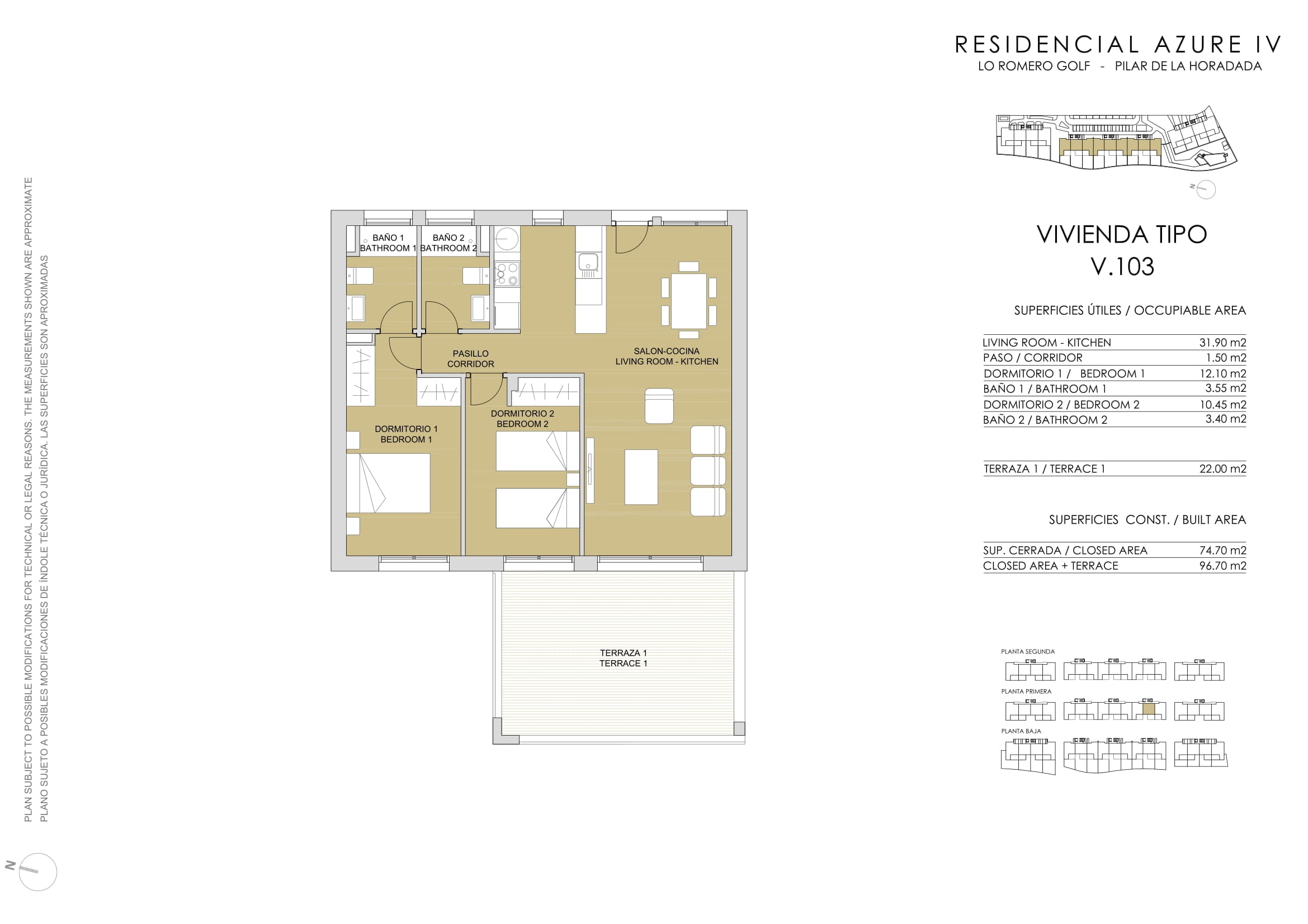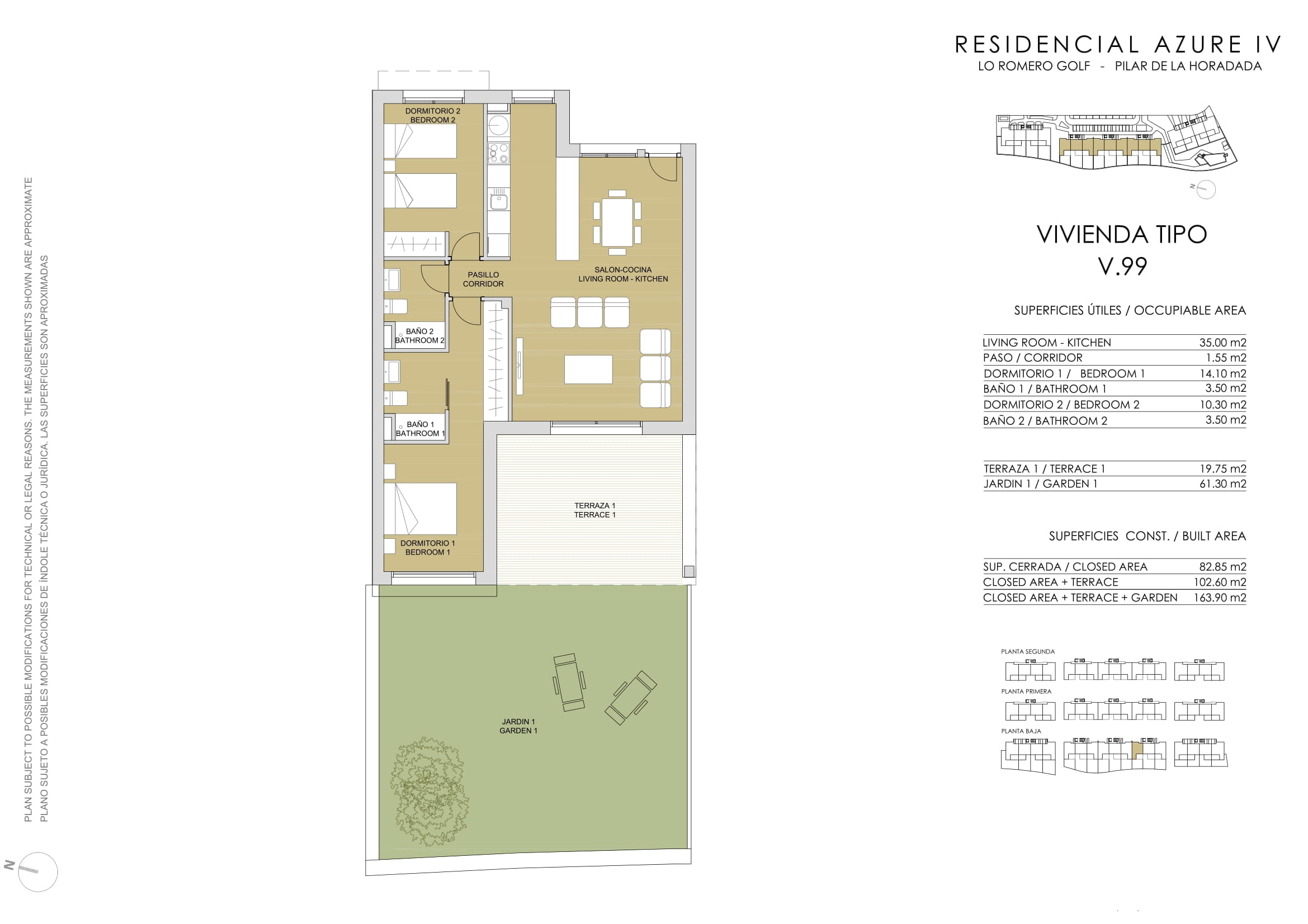 Lo Romero Property are proud to present Residential Azure Phase IV @ Lo Romero Golf, a project of frontline golf properties split between 17 ground floor apartments + garden, 17 first floor apartments + terrace and 17 top floor apartments + solarium. The Azure Apartments project also features a communal swimming pool, green areas, elevator and an allocated parking space.