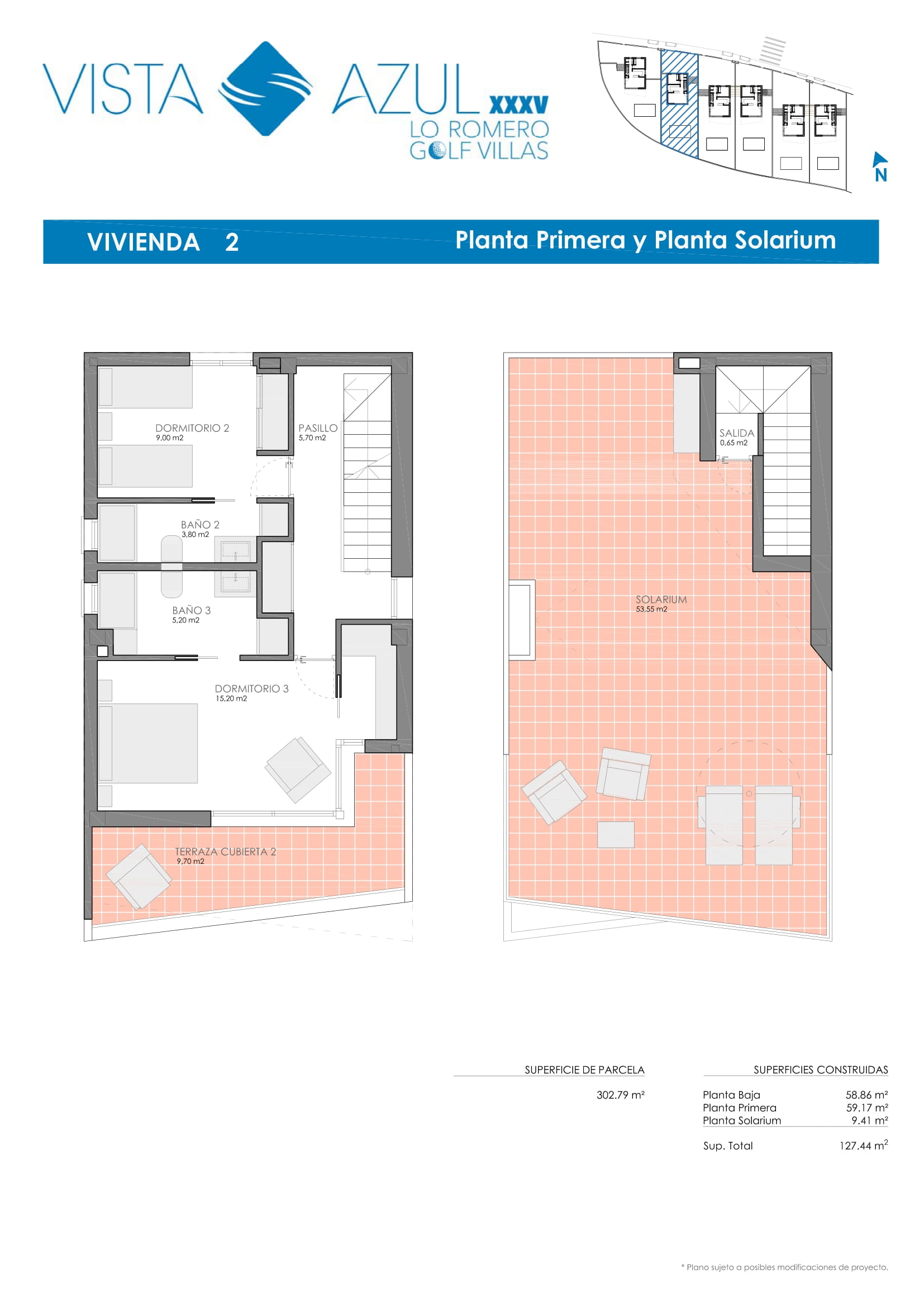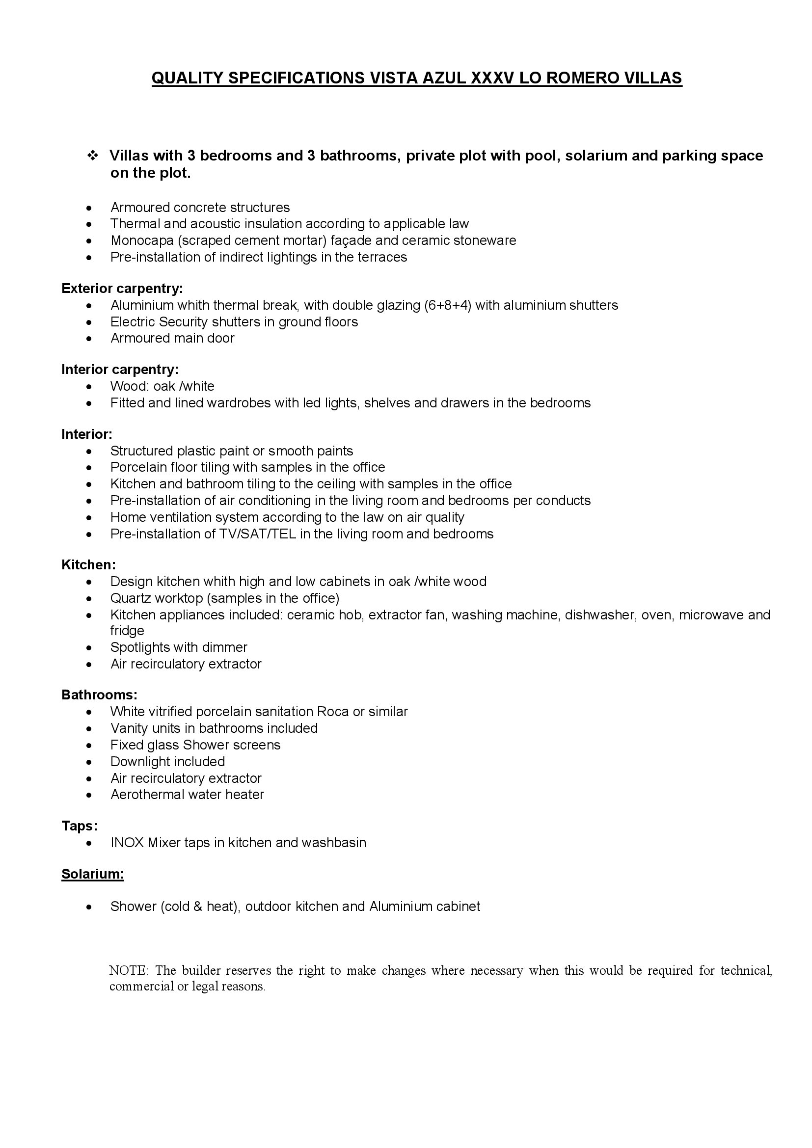 | Villa plot | Bed / Bath | Villa Build m² | Plot m² | Solarium m² | Completion | Price € +iva |